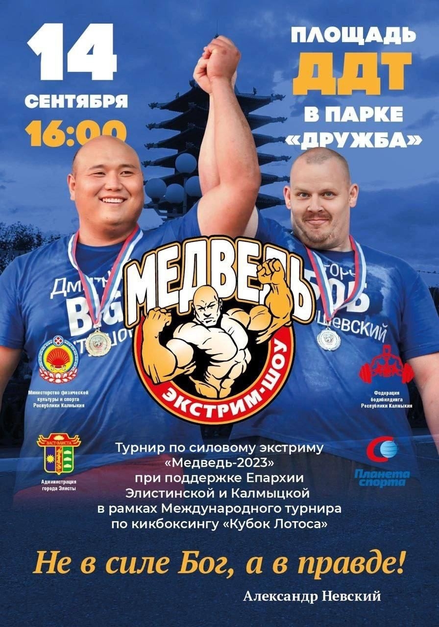 14 сентября в Элисте в преддверии Дня города на площади ДДТ состоится турнир по силовому экстриму «Медведь-2023».