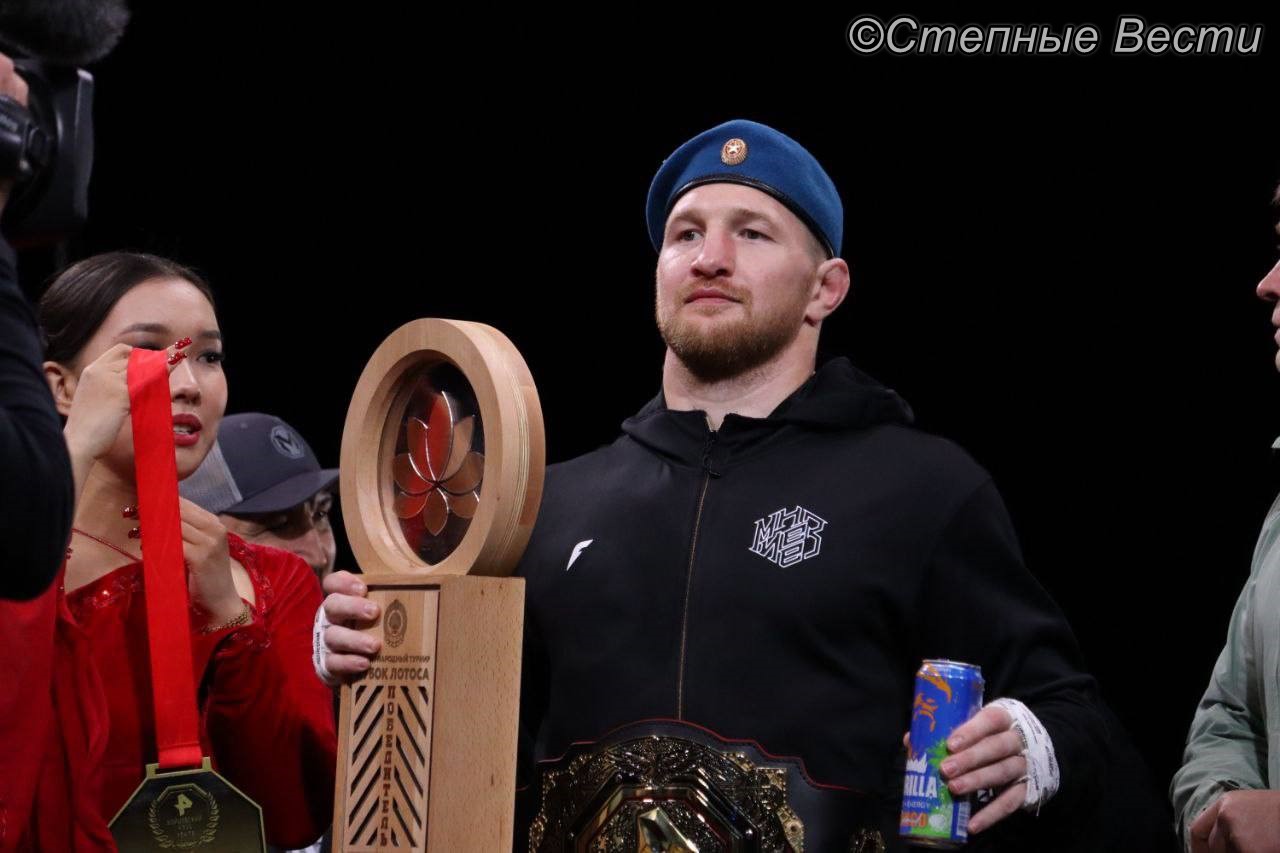 На международном турнире «Кубок Лотоса» присутствовали почетные гости и участники IV экономического форума «Элиста-2023» – чрезвычайный и полномочный посол Шри-Ланки в России Джанита Абейвикрема Лиянаге, губернаторы Ульяновской и Астраханской областей Алексей Русских и Игорь Бабушкин, представители делегаций регионов и другие. Не обошлось в этот бойцовский вечер и без торжественных событий: Глава Калмыкии вручил Председателю Народного Хурала РК трех созывов Анатолию Козачко знаки звания «Почетный гражданин Республики Калмыкия».