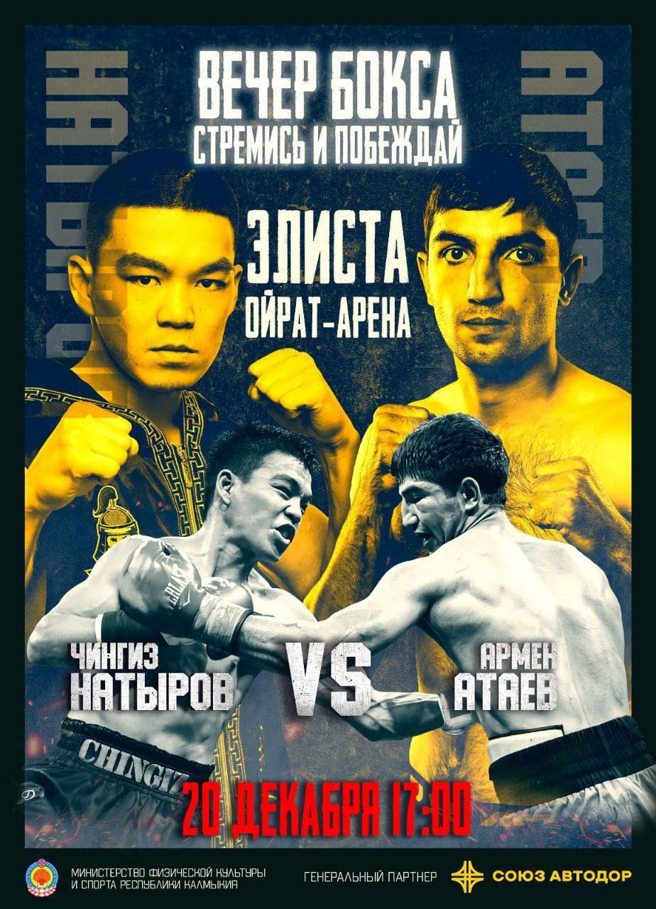 В среду, 20 декабря, в спорткомплексе «Ойрат-Арена» состоится боксерский вечер «Стремись и побеждай». Главным его событием станет поединок между боксерами Чингизом Натыровым и Арменом Атаевым из Кисловодска.