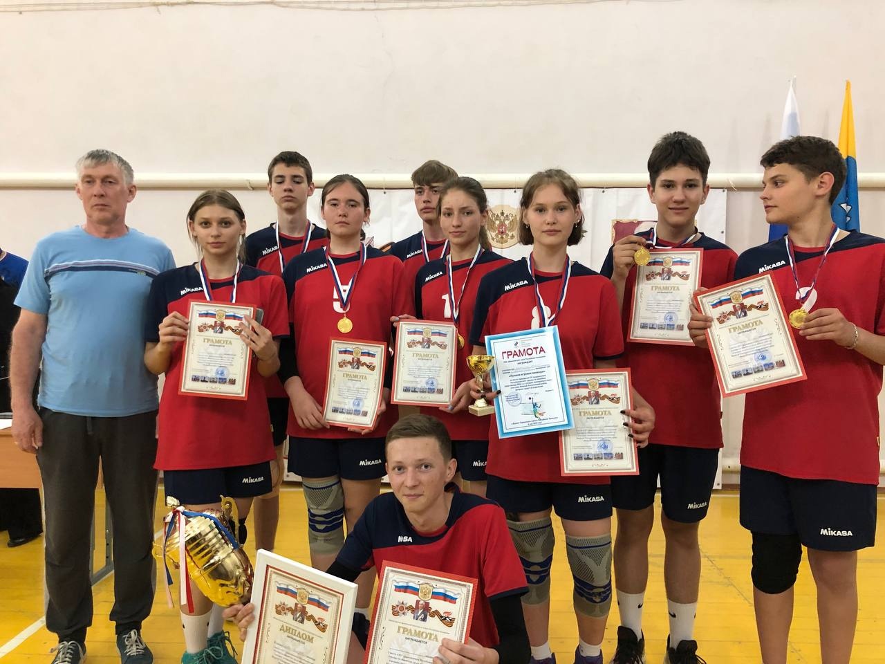 Соревнование в поселке Шарнут также посвятили 78-й годовщине Победы. В нем участвовали восемь команд, в том числе из города Котельниково Волгоградской области. Спортсмены из соседнего региона в итоге заняли первое место. Им вручили переходящий кубок, диплом, грамоты, золотые медали. Серебряными призерами стали воспитанники Троицкой школы, бронзу выиграли волейболисты Октябрьского района.