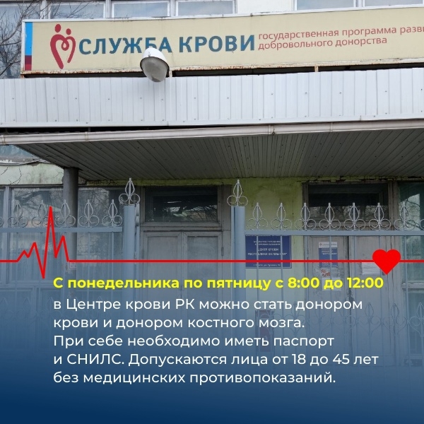 Чтобы принять участие в акции, необходимо сдать 3 мл крови. Допускаются лица от 18-45 лет без медицинских противопоказаний. Центр крови работает с ПН-ПТ с 8.00-12.00.