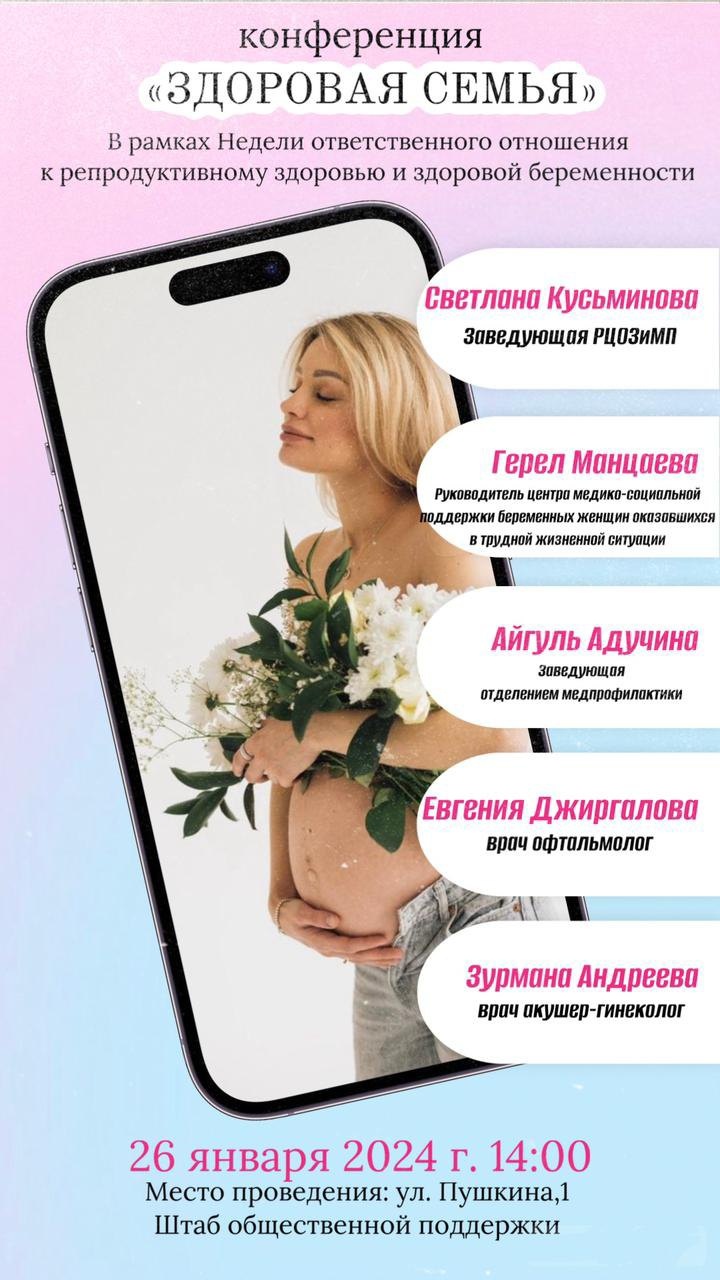 В Калмыкии проведут конференцию «Здоровая семья». Участникам расскажут о сохранении репродуктивного здоровья и здоровой беременности.