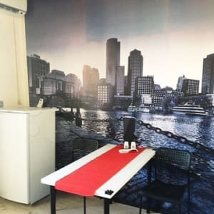 Имеются две кровати, одна двуспальная (не скрипучая), цифровое ТВ, стиральная машина, Wi-Fi, Сплит Система, холодильник, горячая вода, электрический чайник, автономное отопление, посуда для приготовления пищи.