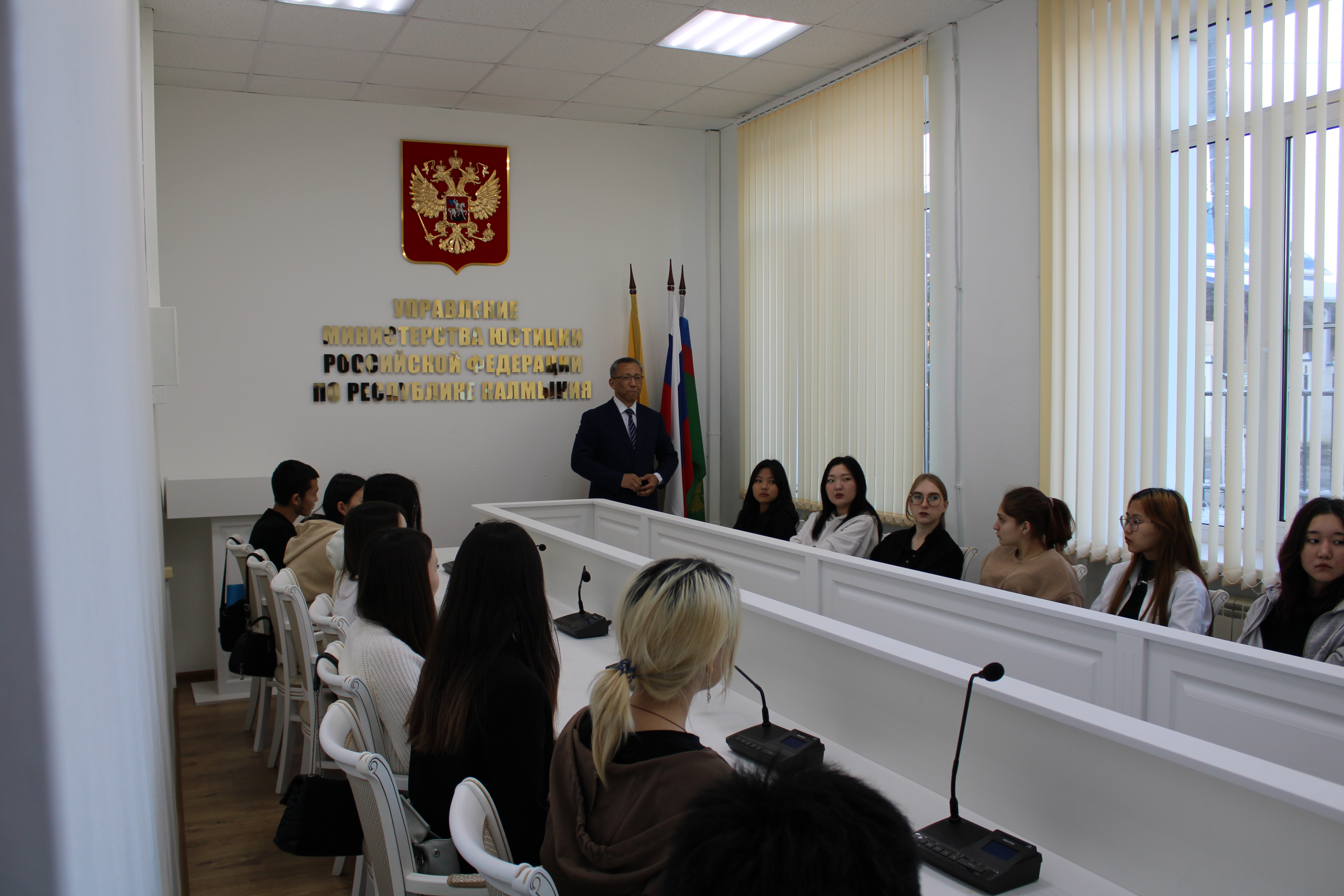 «05.12.2023 студенты 3-го курса специальности «Право и организация социального обеспечения» Калмыцкого филиала ФГБОУ ИВО «МГГЭУ» под руководством преподавателя Басановой Д.В. посетили Управление Минюста России по Республике Калмыкия.
