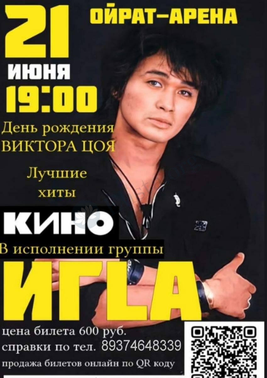 21 июня состоится большой концерт в Ойрат арене посвященный Дню Рождения ВИКТОРА ЦОЯ. В исполнении группы "ИГЛА"вы услышите все самые лучшие хиты легендарной группы КИНО. Для всех фанатов это символичный ежегодный праздник, который мы отметим вместе с вами.