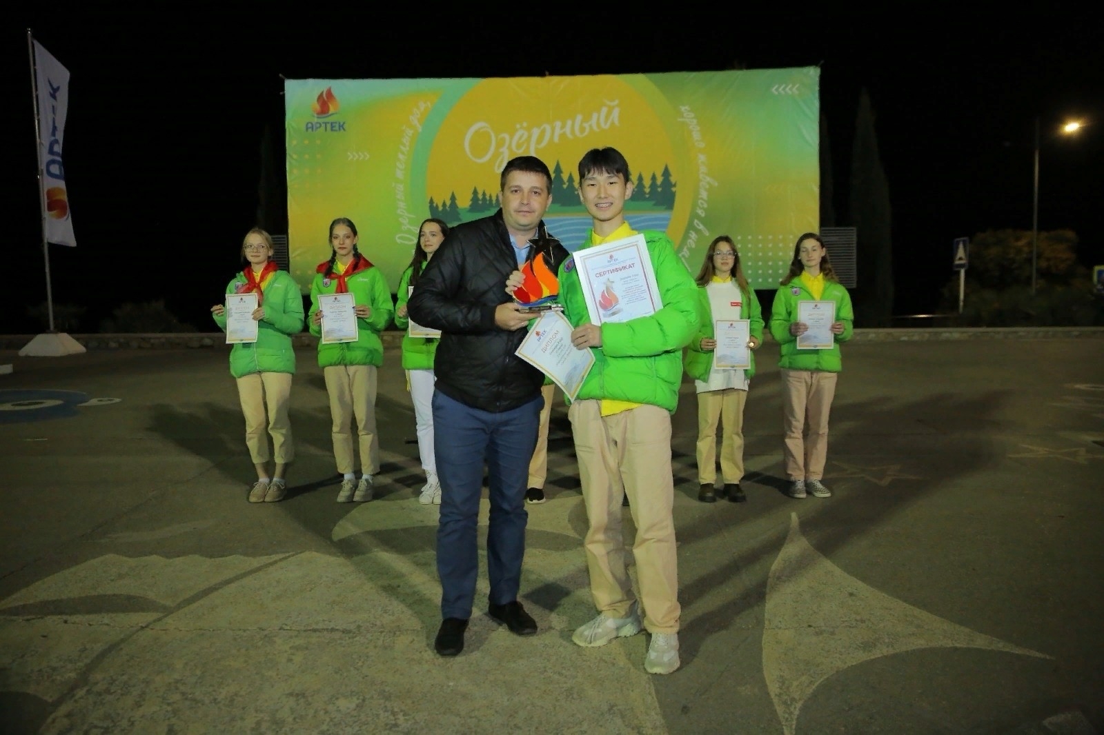 По традиции состоялось вручение главной награды детского центра — знака общественного признания «Звезда Артека». За высокие личные достижения, успешное участие в программах лагеря, уважение сверстников и артековского сообщества были награждены девять человек, в том числе Алдар Дорджиев из Элисты.