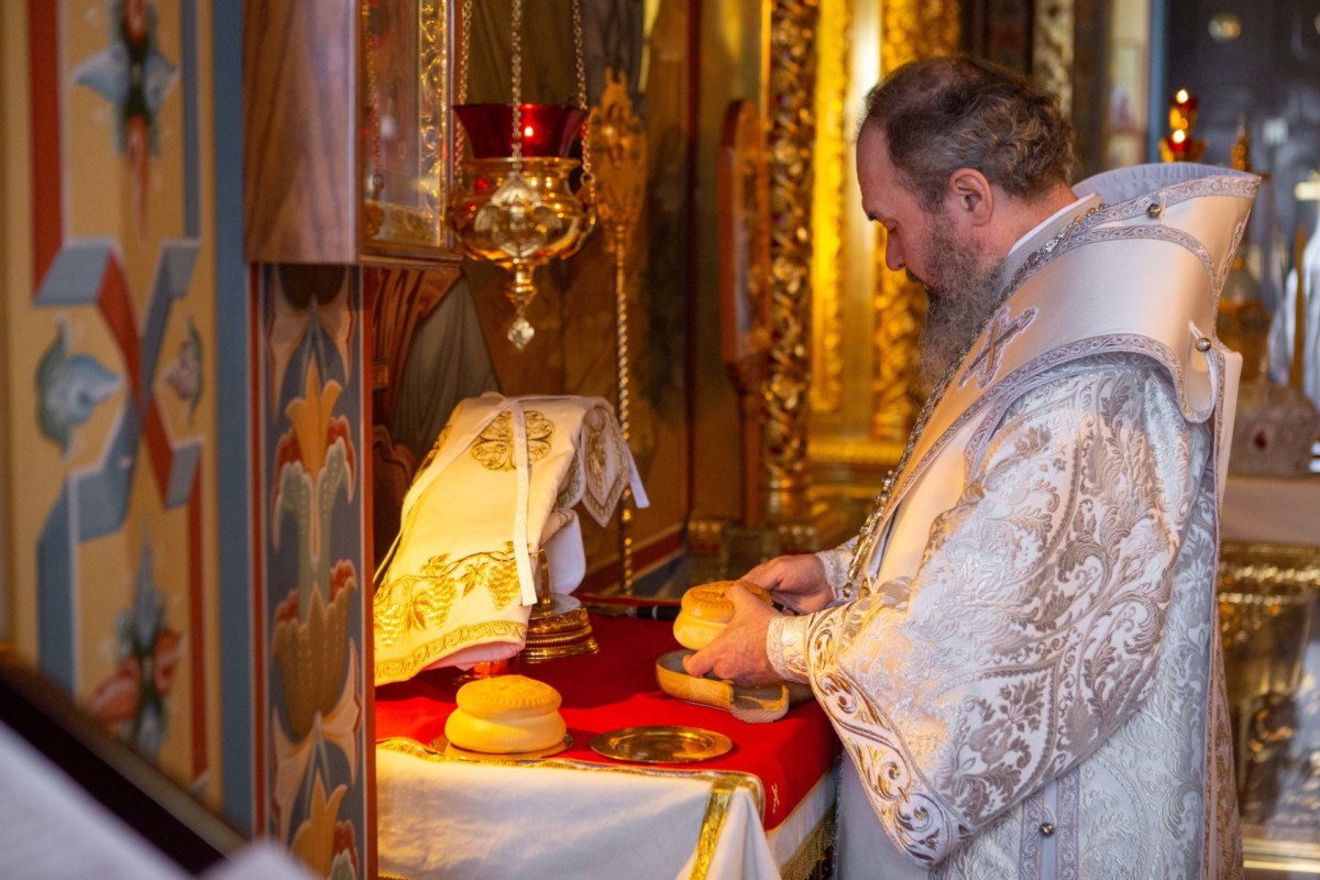 После заамвонной молитвы архиепископ Юстиниан вместе с сослужащим духовенством совершил славление празднику Сретения Господня.