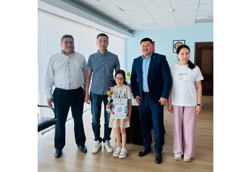 Министр физической культуры и спорта Калмыкии Константин Батыров встретился с серебряным призером Первенства России 2024 года по шахматам среди мальчиков и девочек до 9 лет, прошедшего в Костроме, Эльзятой Левгеевой.